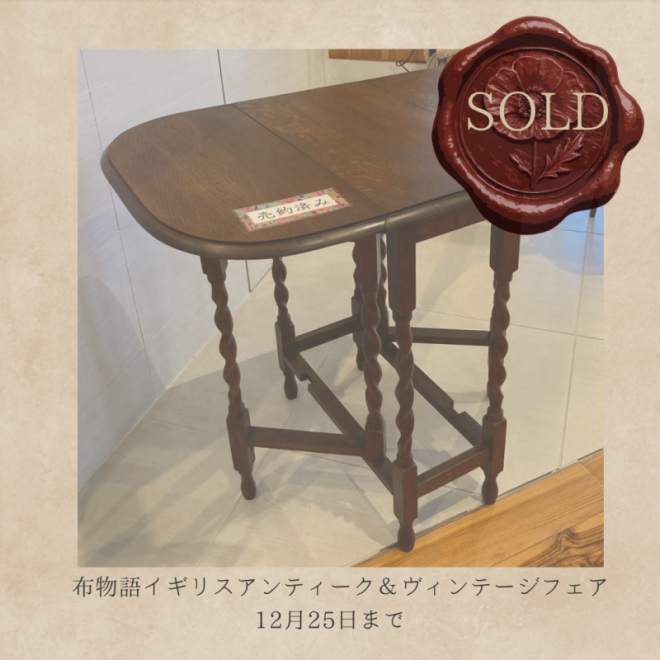 アンティーク&ヴィンテージ、 そしてクリスマス飾りやステンドグラスは 12月25日まで。 お嫁入りしたアンティーク家具の一部です。 それぞれ仕入れた時、お店での活躍、 思い入れがあります。 大事にしてもらってね。
