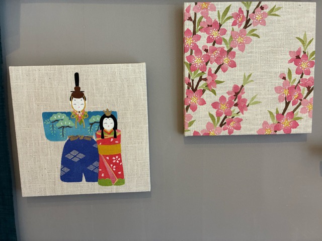 冬、早春、お雛様のタペストリー、、 和のコーナーは季節が先に進んでいます。