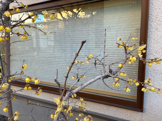 蝋梅香るプリーツスクリーンの地窓。