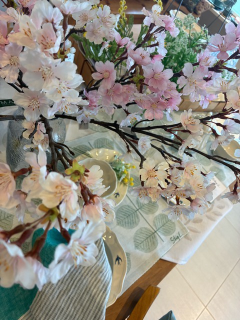 春の陽射しが嬉しくて 桜のアーテシャルフラワーを飾りました。