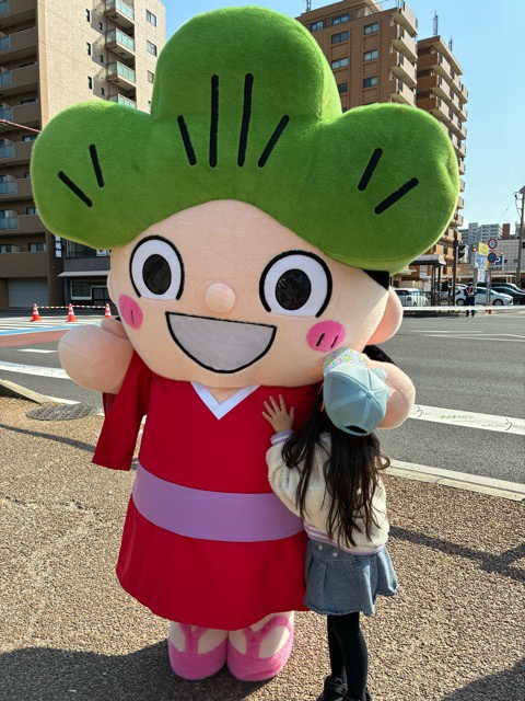 香川マラソンの日 栗林公園のりんちゃんと応援。