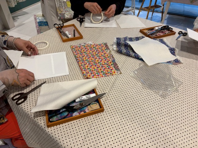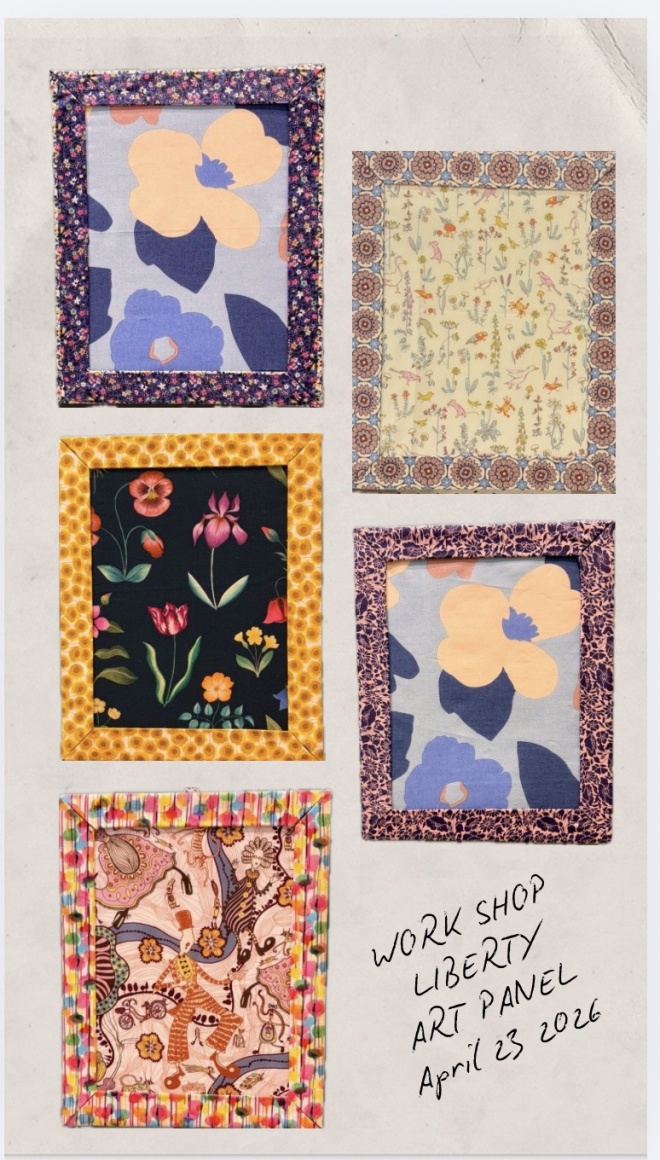 4月23日ワークショップの ご参加ありがとうございました。 今回はリバティをパネルに貼り アートに挑戦! とっても素敵に楽しく出来上がりました。