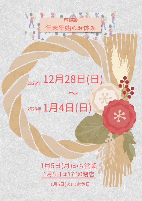 HOME › 新着情報 › 2025.12.28-26.1.4休み